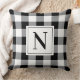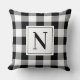 Bold Black Gingham Check Monogram Initial Cushion