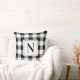 A bold black and white gingham check throw pillow featuring a customisable monogram initial in a black square frame. The striking buffalo check paired with the classic last name initial creates a graphic, high-contrast accent for living rooms, bedrooms, or modern spaces. The initial is fully editable to personalise with your family surname letter.