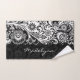 Bold Black White Floral Design Bath Towels Set with optional personalisation on each piece.