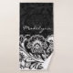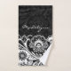 Bold Black White Floral Design Bath Towels Set with optional personalisation on each piece.