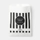 Elevate your business presence with our black and white striped paper bag. Perfect for marketing events, vendor events, this chic striped black and white bag is a must-have for creating a lasting first impression. Features a background pattern of large black and white stripes with a round black frame in the centre to feature your business name and tagline in elegant white text. Make a statement with every interaction and let this modern banner template speak volumes about your brands' dedication to quality and style.