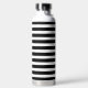 Bold Black White Stripes with Tiny Red Monogram Water Bottle