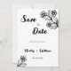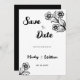 Simple bold black and white typography floral Wedding Save the Date invitation. This minimalist flowers invitation is perfect for any classy and sophisticated glam girl. This design is ideal for a trendy and stylish party event. Customise this design with your own message and personalised information. All designs are printed.