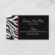Promote yourself and your business in style with this bold, eye-catching black and white zebra print business card with pink highlight. It is a completely customisable template.