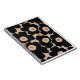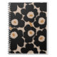 This notebook features a striking, modern floral pattern with large, stylised flowers in deep black against a soft, creamy background. The flowers have a simple, almost graphic quality with a pop of warm golden-yellow in the centre. It's a design that's both eye-catching and sophisticated, perfect for adding a touch of bold style to your everyday notes.