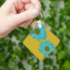 Bold Blue Daisy Art on Mustard Yellow Background Key Ring