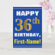Bold, Blue, Faux Gold 36th Birthday w/ Name Card