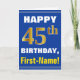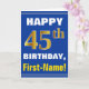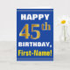 Bold, Blue, Faux Gold 45th Birthday w/ Name Card