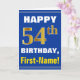 Bold, Blue, Faux Gold 54th Birthday w/ Name Card