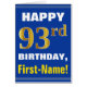 Bold, Blue, Faux Gold 93rd Birthday w/ Name Card