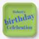 Bold Blue On Lime Green Birthday Party Paper Plate