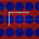 Bold Blue Polka Dots on Dark Red Geometric Fabric