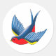 Bold Blue Traditional Swallow Bird Tattoo Style Classic Round Sticker