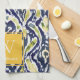 Bold Blue Yellow Abstract Classy Ikat Monogram Tea Towel