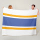 Bold Blue Yellow Racing Stripes White Background Fleece Blanket