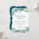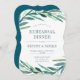 A bold watercolor botanical themed rehearsal dinner party invitation featuring watercolor botanicals wrapping your unique party details in dark teal font.