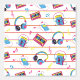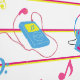 Bold colourful bright neon multicolored 1990s style geometric stripe pattern with music notes, casette tapes, walman, headphones. Retro yet still modern this bold pattern is perfect for accent walls. Peel and stick wallpaper lets you upgrade your small space home decor and personalise your rental with your unique design aesthetic. No more boring white boxes!
