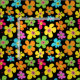Bright and bold floral fabric patterned with fun colourful flowers on black