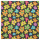 Bold Bright Flowers Pattern on Black Fabric