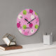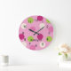 Bold polka dot patterned round wall clock in bright sorbet colours on pink. Edit the optional name or other text in the easy Zazzle editor. Petfect for any girl's room. Created in part with art from resaleclipart.com r.