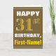 Bold, Brown, Faux Gold 31st Birthday w/ Name Card