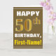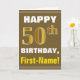 Bold, Brown, Faux Gold 50th Birthday w/ Name Card
