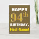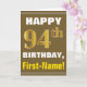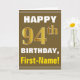 Bold, Brown, Faux Gold 94th Birthday w/ Name Card
