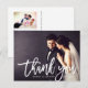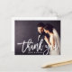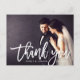 Make a statement with this striking full-bleed photo thank you postcard featuring oversized bold brush script lettering sweeping dramatically across the front. The high-contrast white lettering pops beautifully against your wedding photo, with customisable couple names and wedding date displayed below. A modern, graphic choice for couples who want their thank you card to feel as memorable as their wedding day.