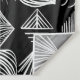 Perfect for fans of unique decor, this pattern combines modern abstract geometrics with traditional mudcloth influences, all set against a striking black backdrop with white tribal motifs.