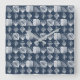 Bold Caribbean Tribal Mudcloth: Navy Blue& White, Square Wall Clock