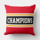 Bold CHAMPIONS Bright Red Black Athletic Stripes Cushion