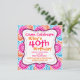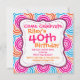Bold teal blue, hot pink fuchsia, and orange concentric circle pattern invitation template. This invitation is shown as a 40th birthday party invitation, but these cute birthday party invitation templates can easily be used for a kids or adults, or can be customised for any type of party or event. Simply fill in the text with your own party details. If you want to change the colour of the text or rearrange things, simply use the orange "Customise It" button. The back of the invitation has the same colourful pattern as the front side.