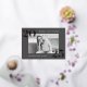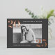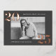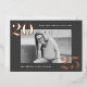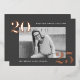 Modern graduation party invitations featuring the graduate's horizontal photo framed in charcoal grey with 2025 in bold, rose gold foil lettering at the top left and bottom right corners. Personalise the front of the photo graduation party invites with the graduate's name and school name. The foil graduation invitation reverses to display your party details in white lettering with a charcoal grey background. The background colour can be changed to a colour of your choice with our edit design feature. The charcoal grey graduation party invites work perfectly for both high school and college graduation parties.