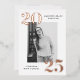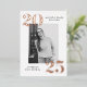 Celebrate your graduate’s achievement with these modern graduation party invitations, featuring a vertical photo framed in white and “2025” in bold rose gold foil lettering at the top left and bottom right corners. Personalise the front with the graduate’s name and school for a unique touch. The back of the invitation displays your graduation party details in white text against a sleek black background, which can be customised to any colour of your choice with our edit design feature. These rose gold foil graduation invitations are perfect for both high school and college graduation parties, adding an elegant and contemporary flair to your celebration.