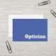 Bold and clear typographic design business cards for An Optician or Optometrist. Designed to convey your business professionalism. Optical Services Business for an Optician or Optometrist. Blue and black colours.