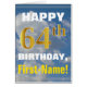 This simple birthday-themed greeting card design features a warm birthday wish like "HAPPY 64th BIRTHDAY, First-Name!" on the front, in bold text on a background depicting a blue sky with white and grey clouds. The birthday number has a faux/imitation gold-like colouring appearance. The name on the front can be customised. The inside features a birthday message that can be customised. A greeting card like this could be a fun way to deliver birthday wishes to somebody who is celebrating their sixty fourth birthday. [~Z0000284]