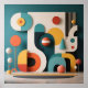 Ignite playful energy and modern vibrancy in any room with this joyful abstract composition. Oversized geometric shapes—circles, half-circles, arcs, and organic curves—burst in a lively palette of teal, coral orange, mustard yellow, deep navy, soft white, and warm terracotta. Playful spheres on slender stems and layered 3D-like forms create depth and movement, delivering bold contemporary style with a cheerful, optimistic mood.