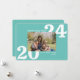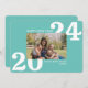 This trendy and modern New Years photo card features large white typography numbers with a single horizontal photo. The greeting on the front says "Happy New Year".