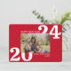 This trendy and modern New Years photo card features large white typography numbers with a single horizontal photo. The greeting on the front says "Happy New Year".