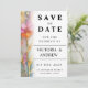 Make a lasting impression with this stunning save the date card that celebrates your love in style. The bold floral pattern commands attention, inviting your guests to an unforgettable celebration. Pair it with coordinating stationery for a cohesive, polished look that reflects your wedding's aesthetic.