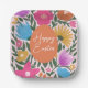 Bold Colourful Florals Stylish Easter | Orange Egg Paper Plate