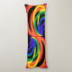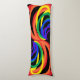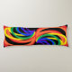 This gorgeous body pillow features an abstract three dimensional pattern of rainbow crescent moons in bold colours of red, orange, yellow, green, blue and purple on a black background.