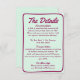 Simple and stylish retro colourful wedding guest info details. With funky light green background and burgundy text layout. All the info are customisable as website, transportation, accommodation . Grab it along with other products from this classy hand made retro wedding suite.