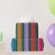 Wrap your gifts with a fun and modern pattern of scalloped stripe columns. This pattern of multi-coloured, rainbow scallops feels fresh and festive on a deep teal background and brings a sense of graphic whimsy to the gift stack.