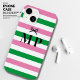 Introducing our new iPhone 14 case, designed with a simple green, pink and white striped pattern that will surely turn heads. To add a touch of cuteness, we've included a cute black bow on the front. And to make it truly personalised, the case can be monogrammed with your initials of choice. This case not only looks great, but also provides reliable protection for your phone. Its durable material ensures that your phone stays safe from scratches, bumps, and drops. Get ready to make a statement with our sage green and white striped iPhone 14 case.