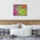 This bold, colourful wall art canvas print features a splatter paint, abstract, grunge effect in magenta, bright neon green and orange.