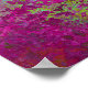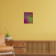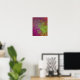 This bold, colourful wall art poster features a splatter paint, abstract, grunge effect in magenta, bright neon green and orange.