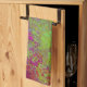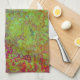 This bold, colourful kitchen towel features a splatter paint, abstract, grunge effect in magenta, bright neon green and orange.