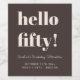 This custom wine bottle label in brown and cream features bold, modern typography with a playful ‘Hello Fifty’ headline and a neutral color palette. Ideal for 50th birthday celebrations, dinner parties, and or any milestone events. Personalize the name, date, and location to match your celebration details.
