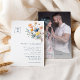 Introducing our Bold Elegant Floral Monogram Crest Wedding Photo Invitation Design, a modern celebration of nature's artistry, featuring colourful floral watercolor arrangements in lovely hues of blush pink, navy and dusty blue, peach, and yellow with soft eucalyptus greenery beautifully set against a simple pristine white canvas with minimalist dark blue typography, creating a balanced look of timeless elegance and modern sophistication. Whether you're planning a botanical spring garden party, a sun-soaked summer celebration, or an ethereal fall soiree, this design is an effortless choice for couples seeking a polished yet lively backdrop for their love story. As with all of our designs, if you have any questions or special requests for coordinating or custom products for your wedding, please reach out to us.